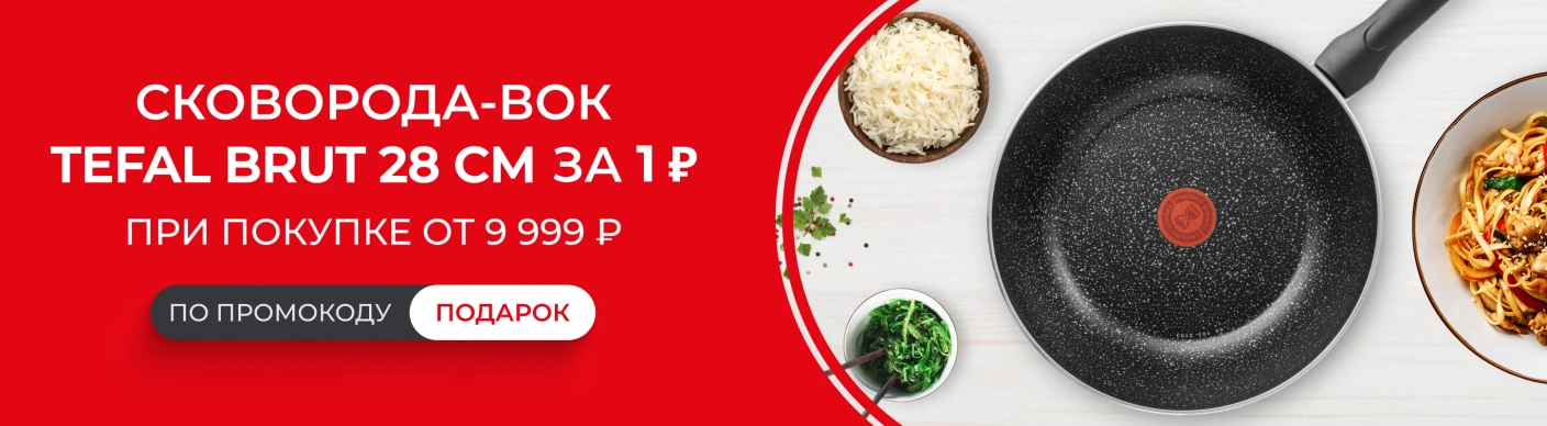 *Предложение не суммируется с баллами программы лояльности, другими акциями и промокодами. При возврате товара подарочный товар также возвращается. Акция действительна, пока сковорода Tefal Brut 28 см есть в наличии.