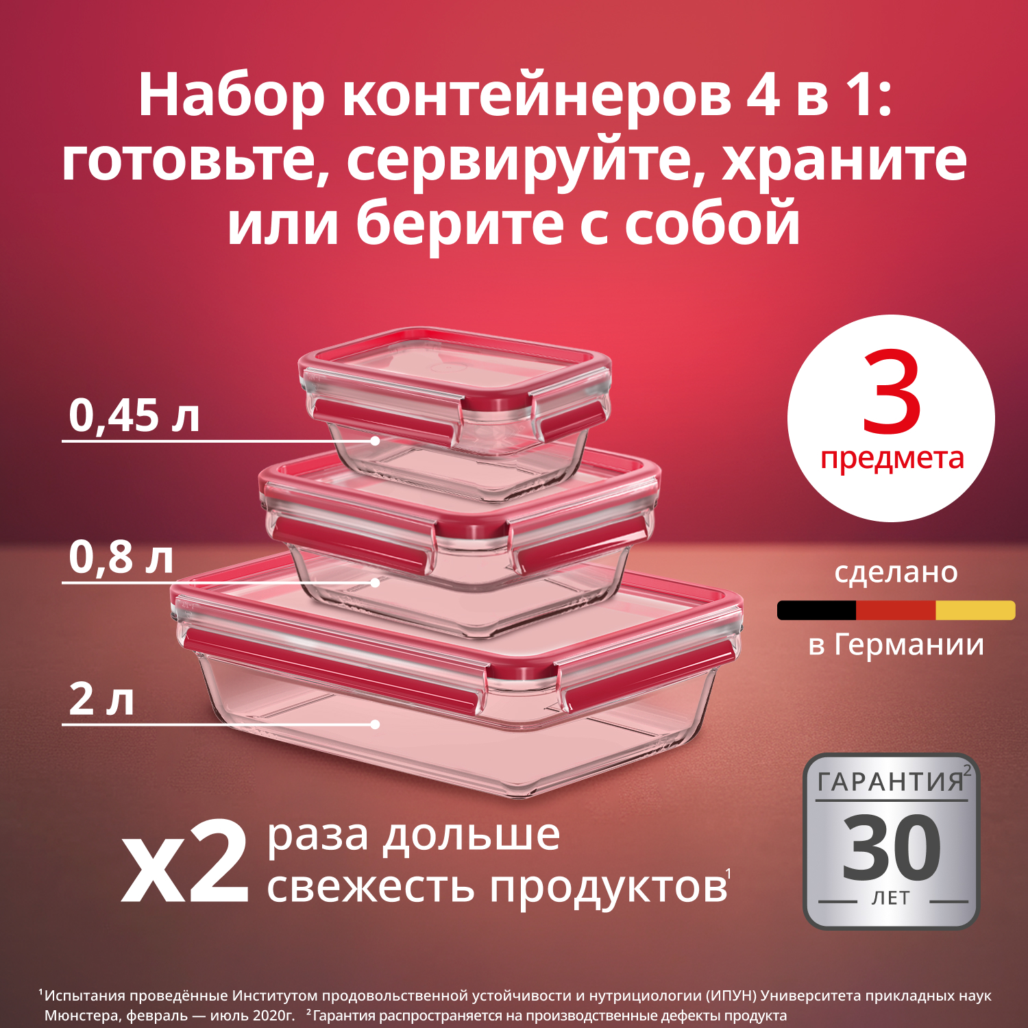 Набор стеклянных контейнеров Tefal с герметичной крышкой – ваш помощник на кухне.
